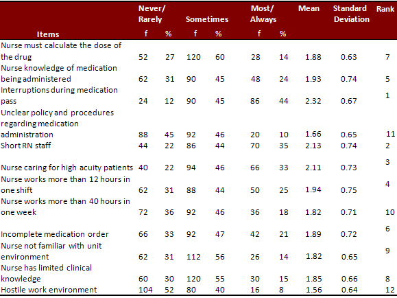Table 2: Primary factors of medication errors as perceived by the nurses