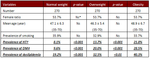 Table 1: Comparison of cases with normal weight, overweight, and obesity